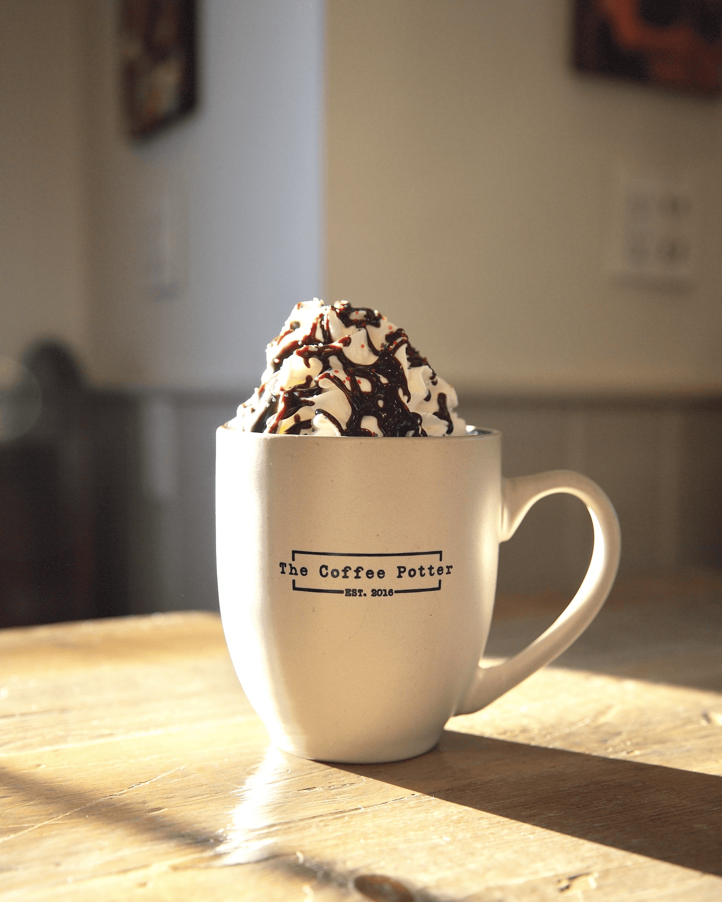 Espresso, sweet white chocolate, and caramel drizzle, topped with whipped cream for a creamy finish